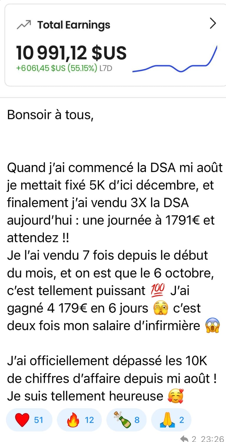 Oui ! La DSA t'explique exactement comment commencer à créer un complément de revenu, même petit au début - ce qui change déjà beaucoup de choses dans un foyer.